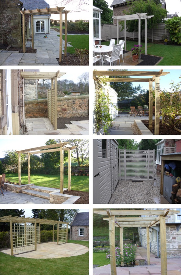 Pergolas consist of vertical posts which support cross-beams and often open lattice to form shaded walkways and sitting areas. They can extend from the building or stand alone as a more permanent architectural gazebo. Traditionally they were constructed of stone, brick and wood though are increasingly popular in weather-resistant wood which can be left bare, stained or painted.